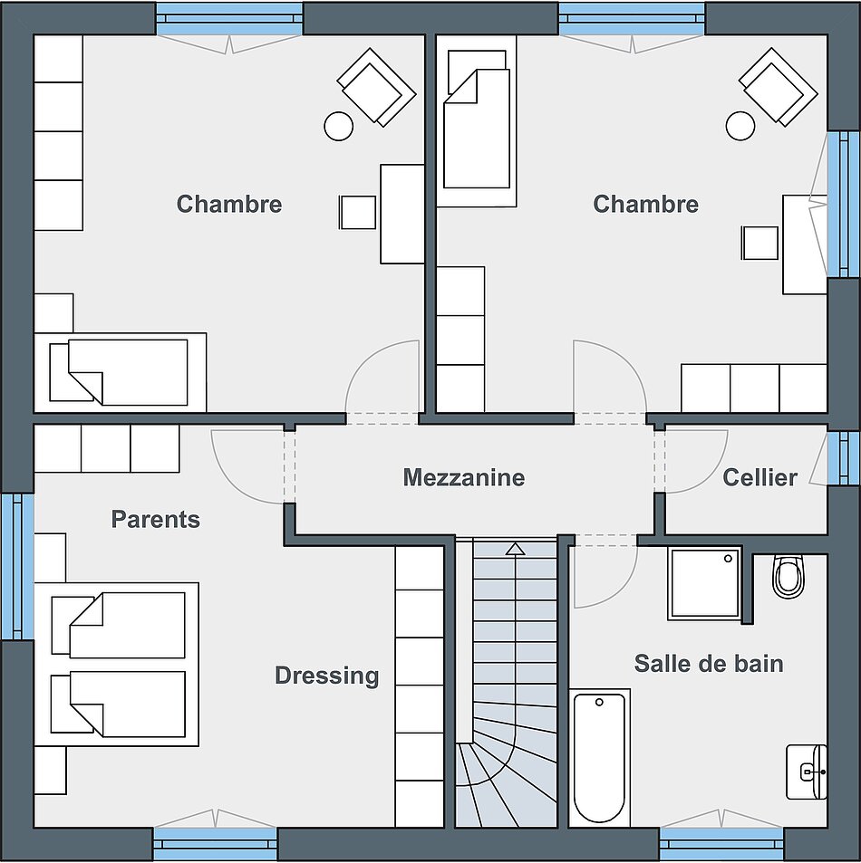 L'habitat contemporain en plein centre-ville : WeberHaus CityLife repousse les horizons de la maison familiale contemporaine au centre-ville. Ce plan cubique repose sur un plan carré, pratique et polyvalent. L'architecture aux lignes pures fait toujours bonne figure - que ce soit au centre-ville, en banlieue, ou à la campagne. Vous êtes à deux ? ou à cinq ? Vous aimez recevoir vos amis ? CityLife vous est proposée en différentes tailles. Choisissez tout simplement la variante qui vous ressemble. De nombreux détails d'aménagement – comme par exemple différentes variantes de façade - vous permettent de personnaliser votre maison. Le nec plus ultra : la terrasse et le balcon. La variante de balcon spéciale vous offre le double d'espace. Vous allez apprécier cet espace supplémentaire pour vos loisirs et vos fêtes !