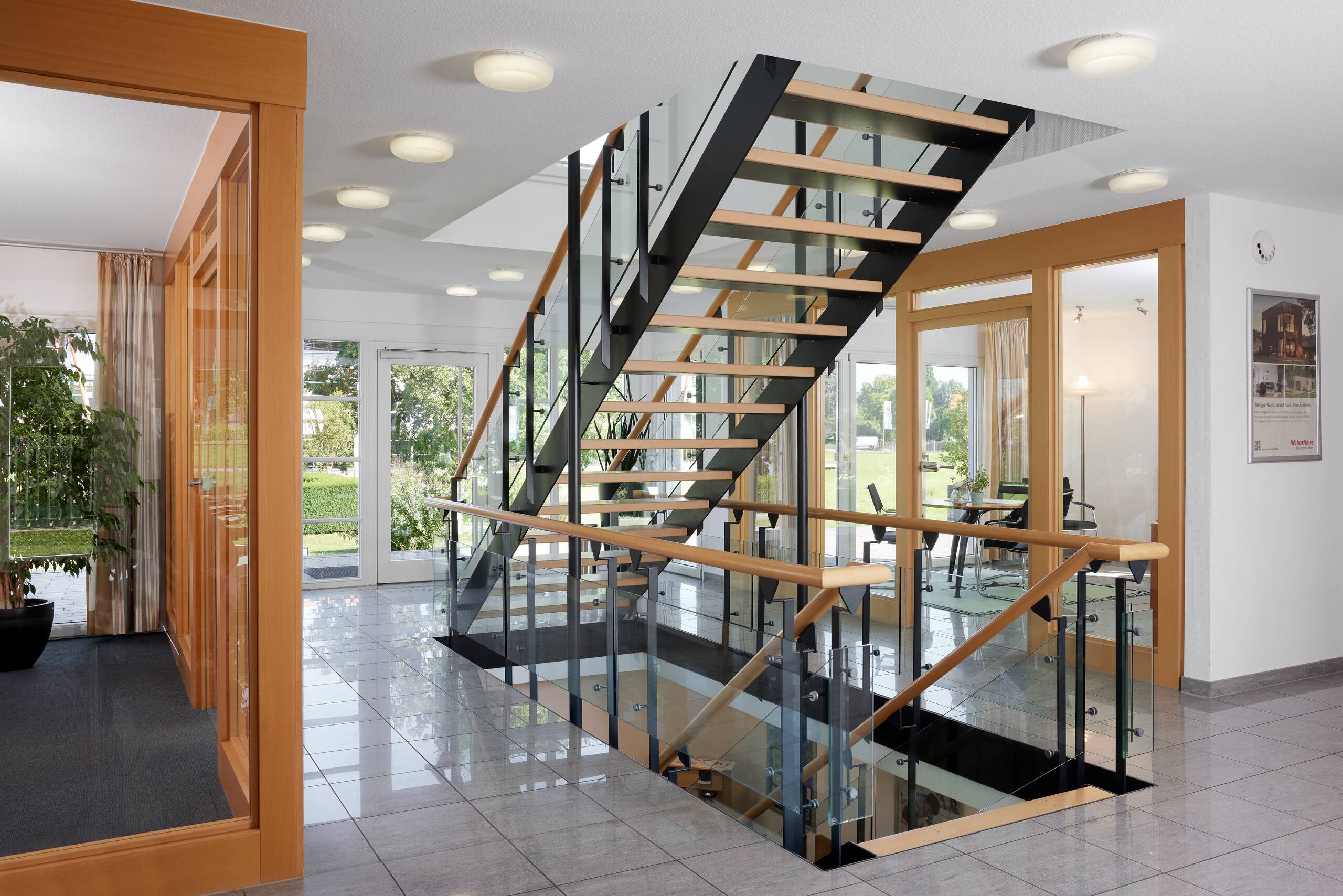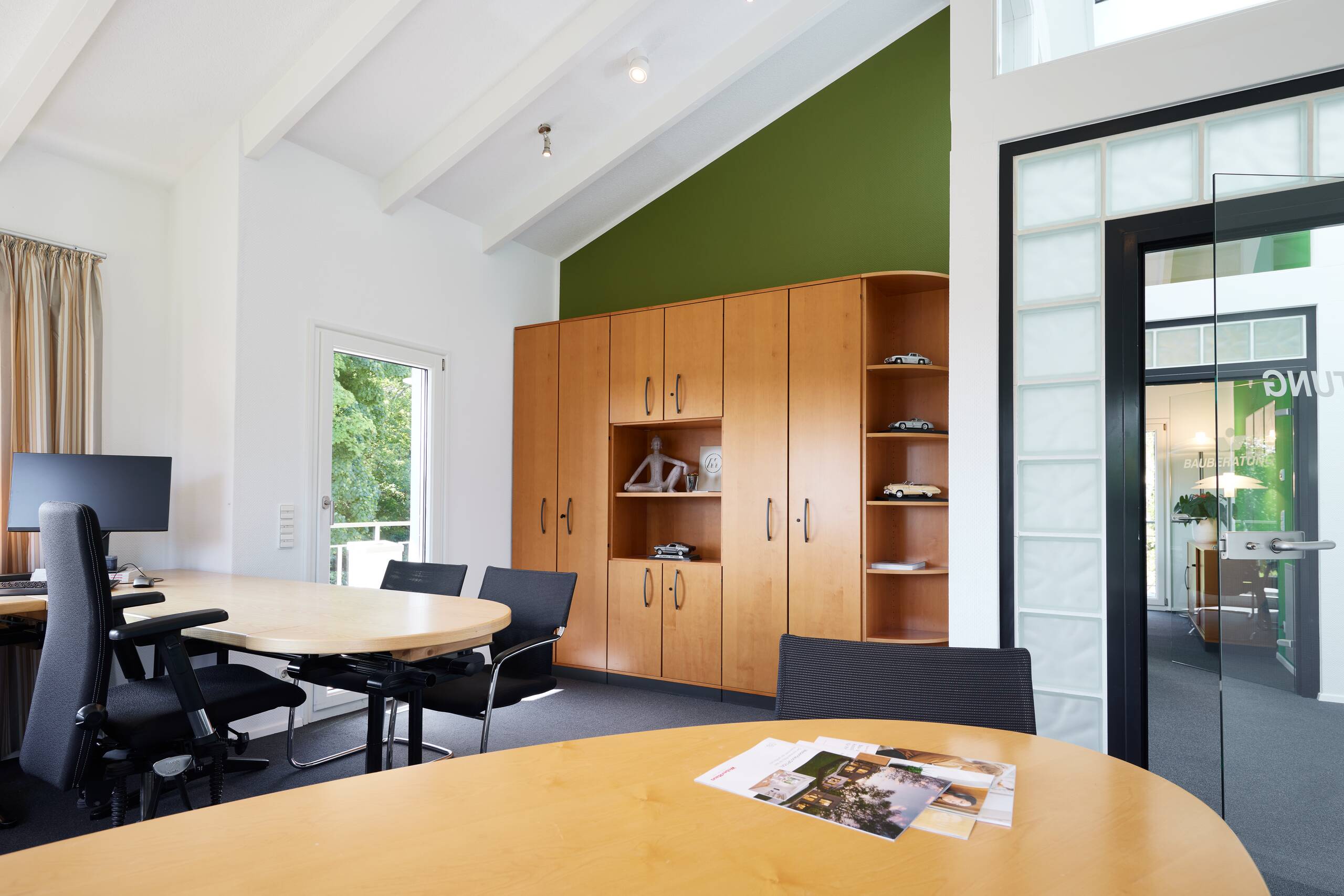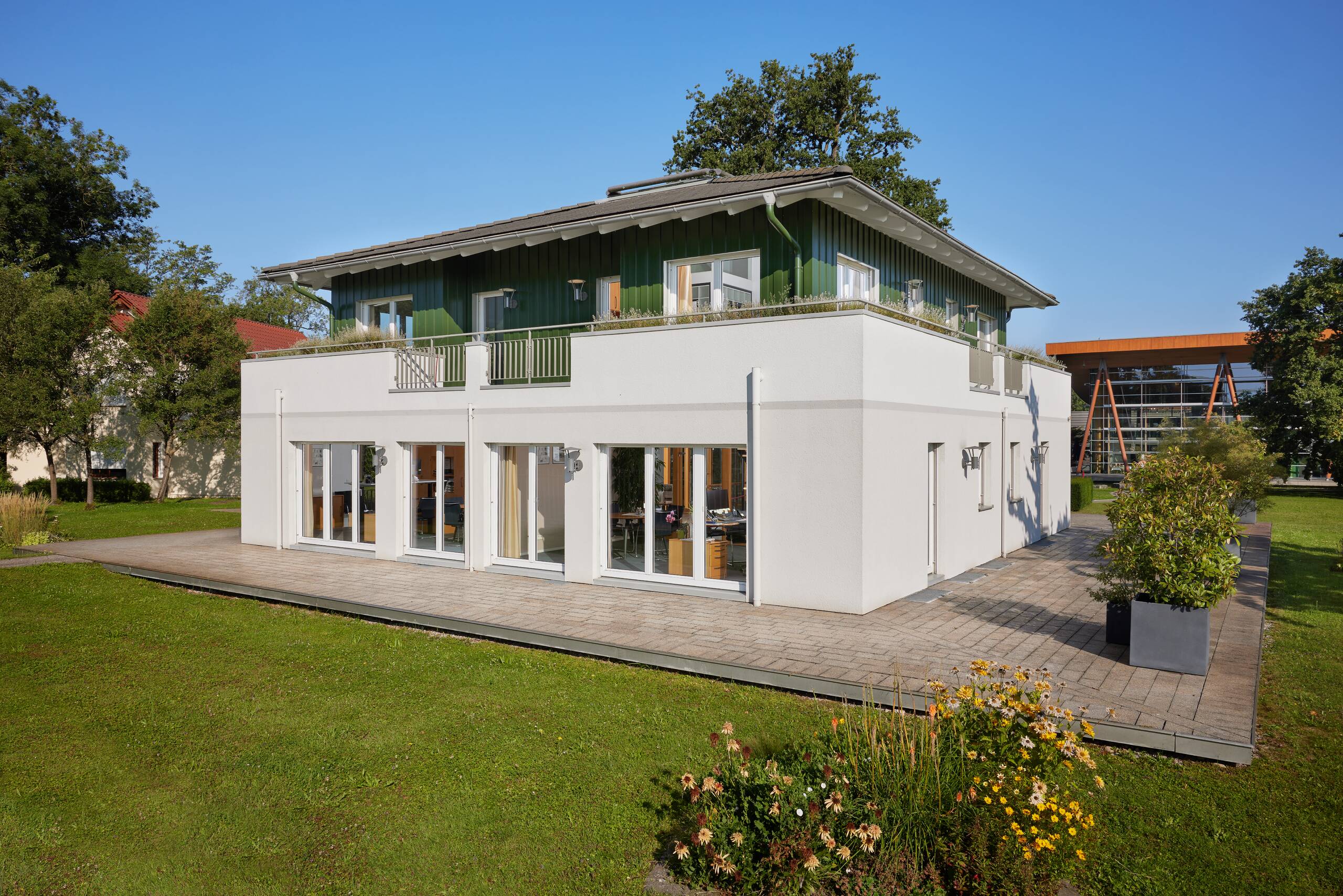 La villa urbaine contemporaine séduit par ses lignes pures et sa symétrie. Elle offre un équilibre parfait entre espace de travail et de vie. La solution réside dans le plan carré, qui sépare distinctement les différents espaces fonctionnels, avec un espace de bureau au rez-de-chaussé, et l'espace de vie à l'étage. Les combles, légèrement en retrait, confèrent un plus de légèreté au projet. La construction étagée et la combinaison entre façade crépie et habillage bois confèrent à la maison une distribution horizontale, soulignée par le contraste des couleurs entre rez-de-chaussée et combles. Un exemple de polyvalence, où l'espace de travail à la maison investit un niveau complet avec113 m², les combles offrent un espace généreux à la famille. On y accède par un escalier spacieux. Le rez-de-chaussée spacieux abrite le bureau ou le cabinet. C'est un espace de travail et de vie idéal pour les professionnels ayant besoin de beaucoup d'espace, comme les médecins, avocats, experts-comptables, architectes ou autres professions libérales. La séparation claire entre les espaces fonctionnels permet de gérer le flux des visiteurs à l'écart de l'espace de vie. Dans l'entrée, un vestibule spacieux permet d'accueillir les clients, les partenaires commerciaux ou patients. Le caractère unique de cette maison réside dans un plan aux lignes pures et symétriques et dans un choix des couleurs marquant. Les fenêtres dans les combles sont largement dimensionnées. Les combles, surmontés d'un toit en pavillon avec dôme lumineux, offrent un espace ouvert jusqu'au faîte avec une ambiance très "nature". Le chauffage consiste en un système de chauffage à air pulsé moderne.