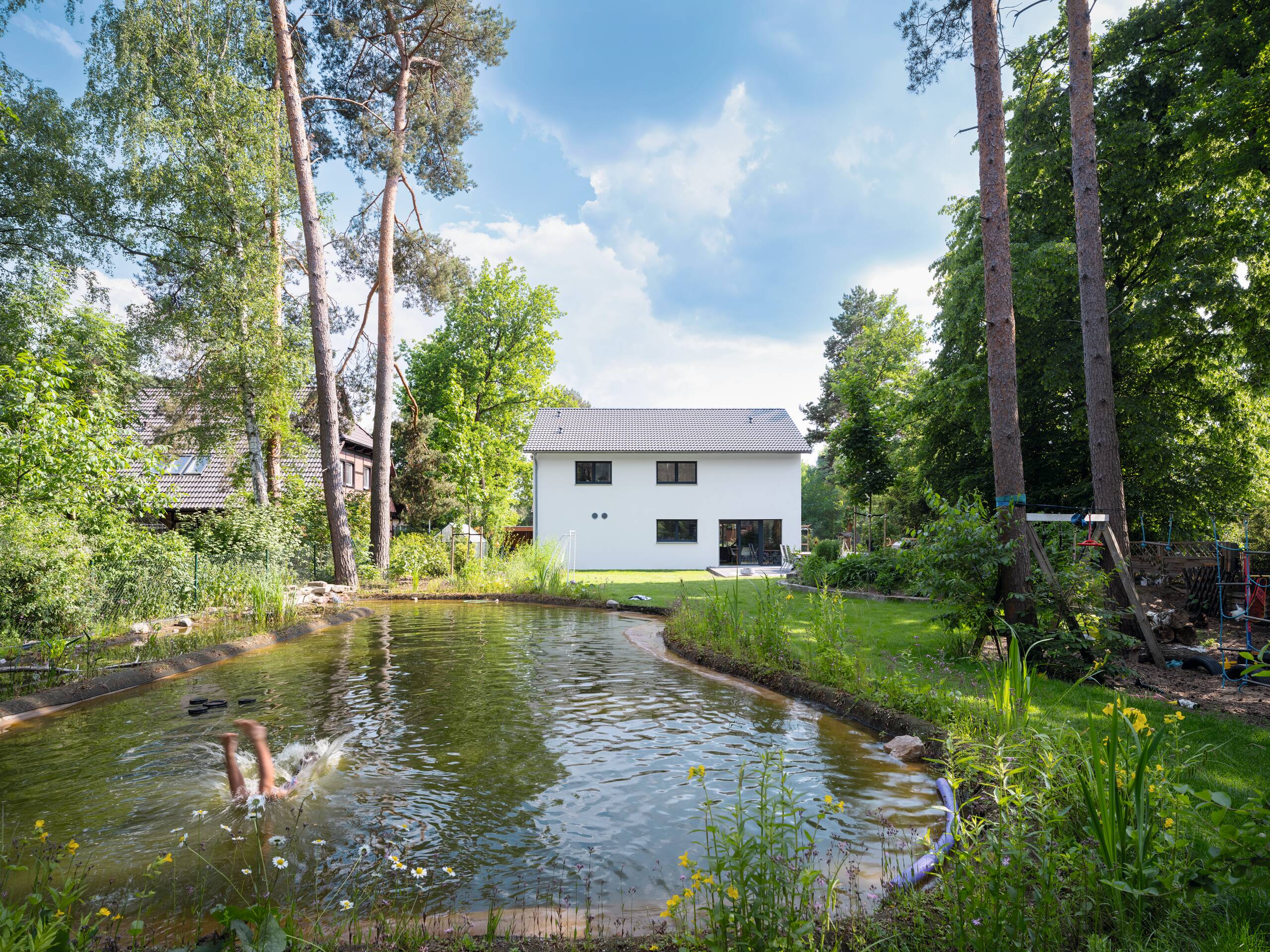 La base d'un climat d'habitation plus sain et d'une faible consommation d'énergie est l'enveloppe ÖvoNatur Therm du bâtiment, qui est standard pour toutes les maisons Weber. Elle se compose exclusivement de matériaux respectueux de l'environnement et de la santé. L'énergie nécessaire est fournie par l'installation photovoltaïque sur le toit, complétée par une batterie de stockage.