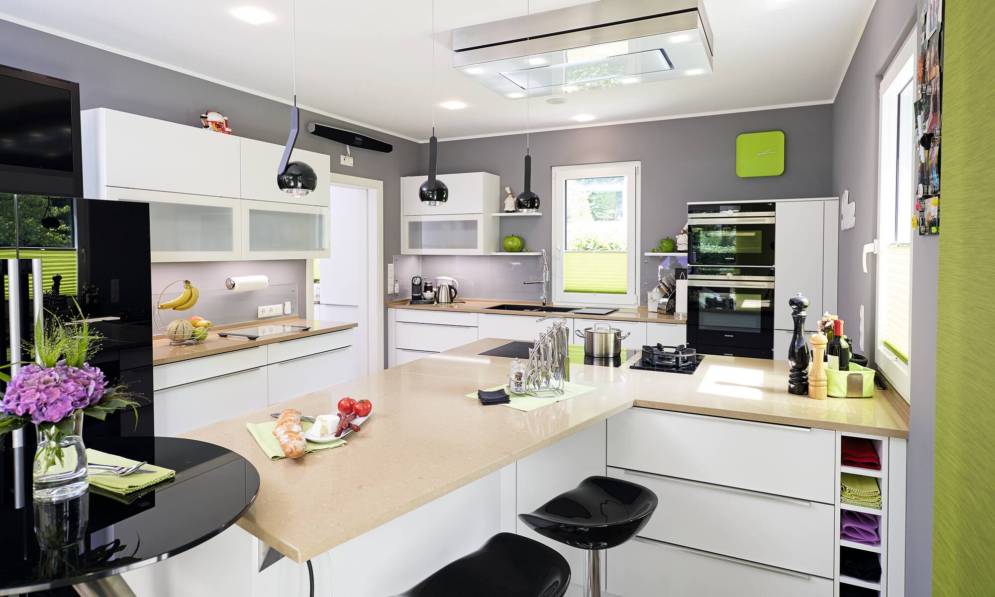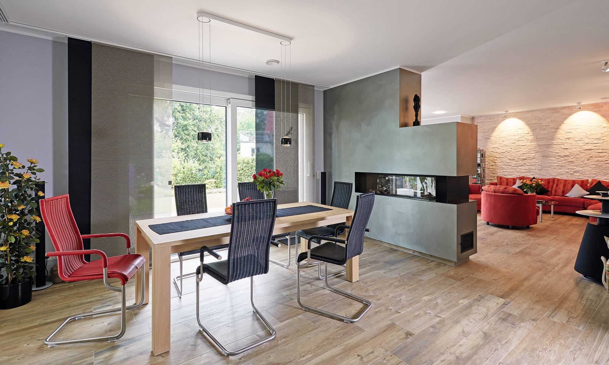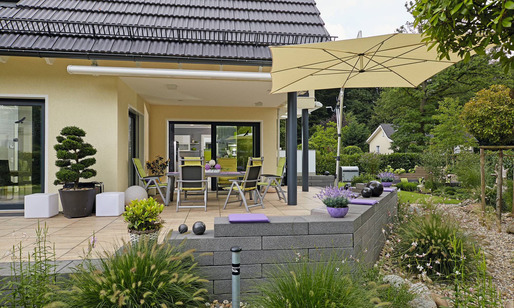 Cette maison d’architecte représente pour ses propriétaires une véritable oasis de bien-être. Ses caractéristiques : trois pignons, deux balcons, un garage et une cave aménagée en logement. Un toit en pente raide, un crépi décliné en jaune pâle, des encadrements de fenêtres et des tuiles gris anthracite confèrent à la maison un aspect moderne.