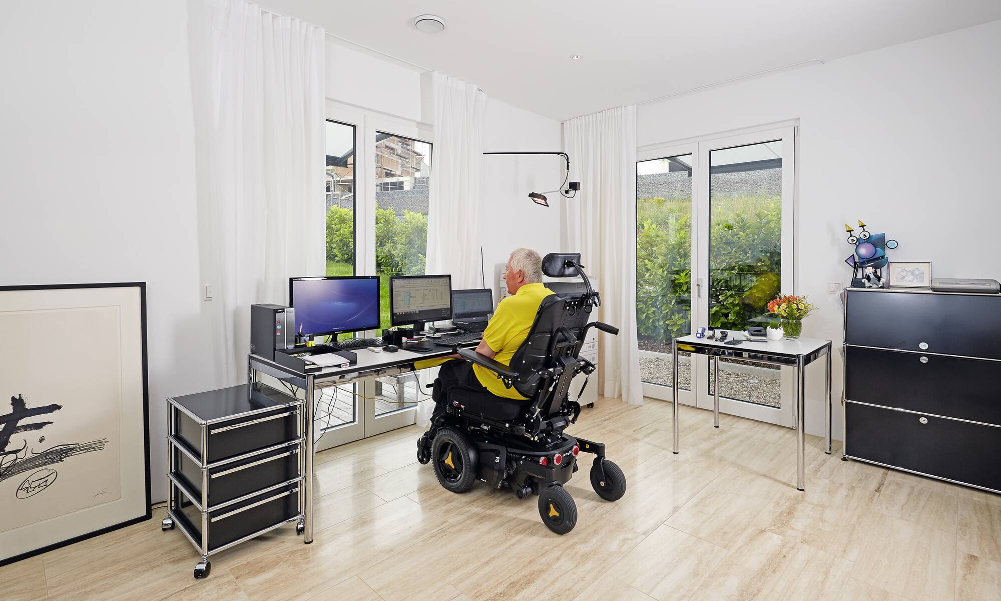 Le couple Janssen tenait absolument à ce que leur nouvelle maison soit sans obstacle pour que le propriétaire en fauteuil roulant puisse s’y déplacer sans aide. Il a donc opté pour une maison d'architecte épurée à toit plat, d’une surface habitable d'env. 210 m².
