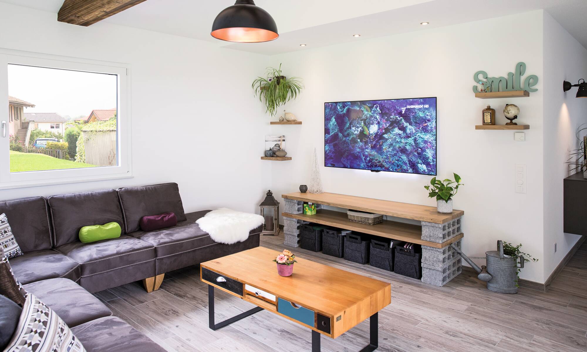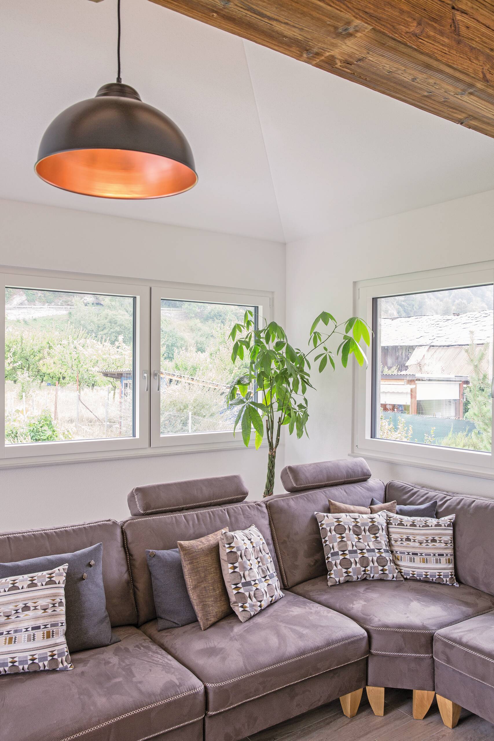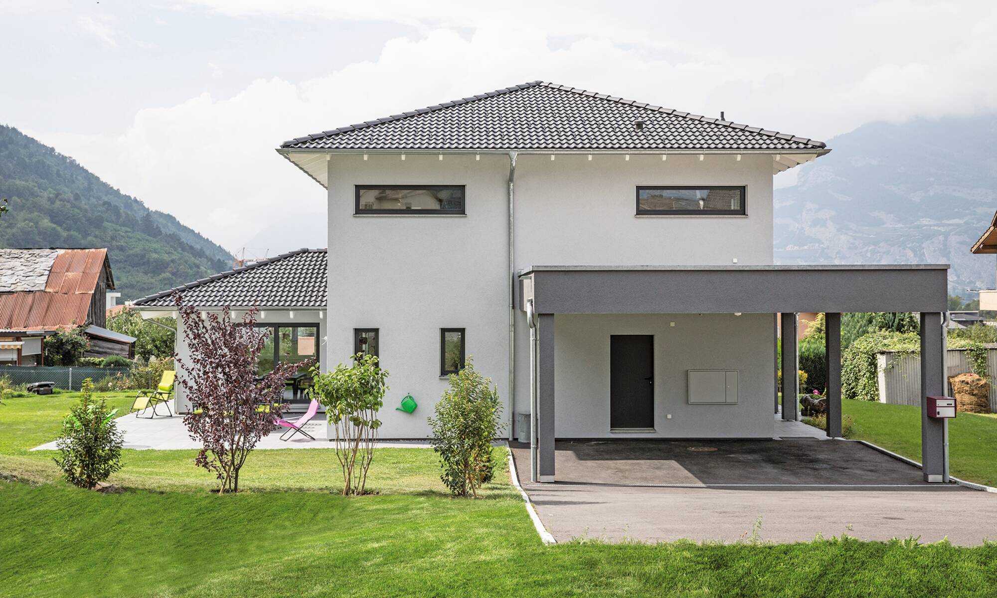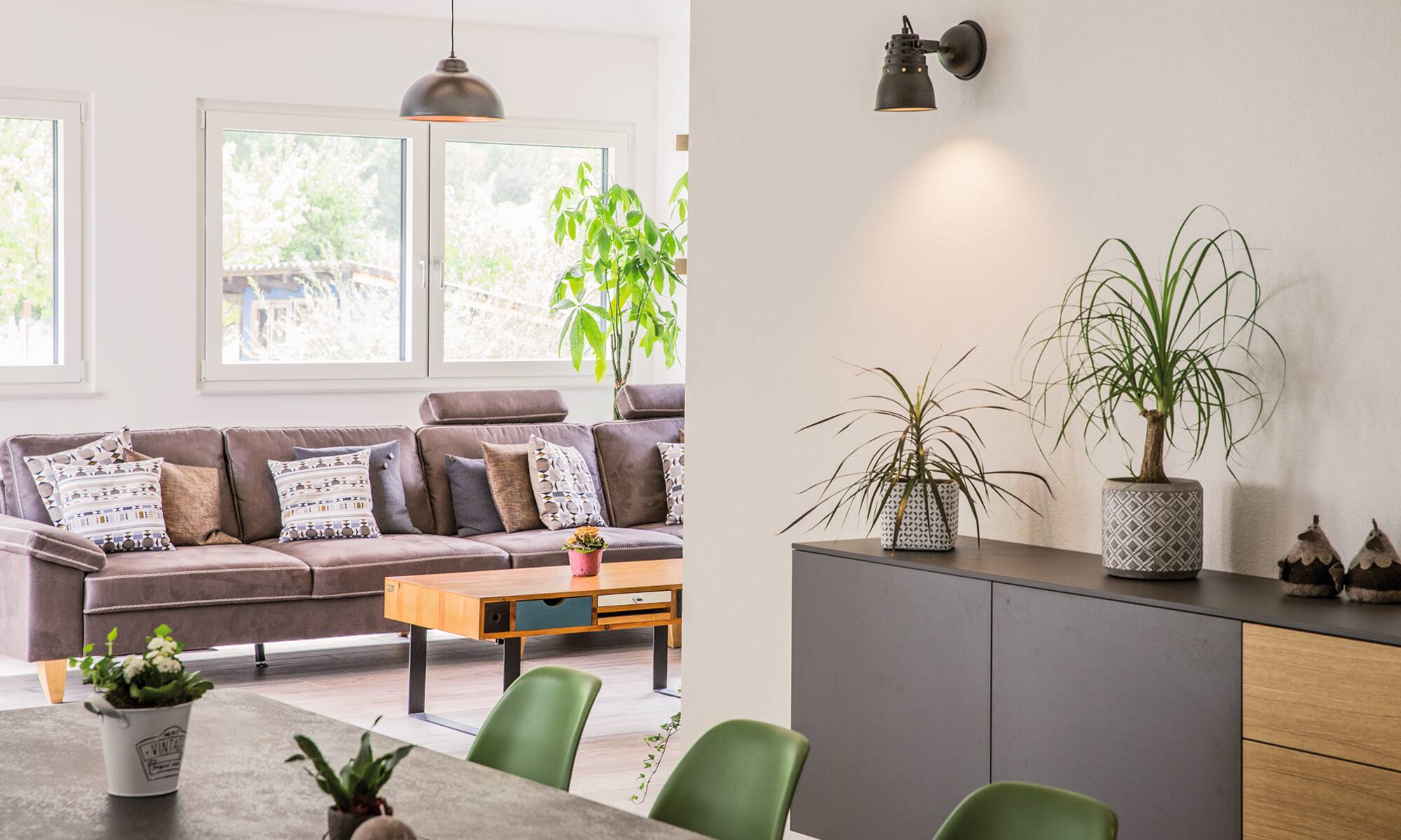La maison d’architecte à toit en croupe est pour les propriétaires la villa de leurs rêves dans laquelle ils se sentent bien. "Si nous devions déménager un jour, nous demanderions immédiatement à WeberHaus de nous reconstruire la même maison", dit le père de famille d’emblée. La maison compte env. 200 m2 de surface habitable répartis sur deux étages pleine hauteur.