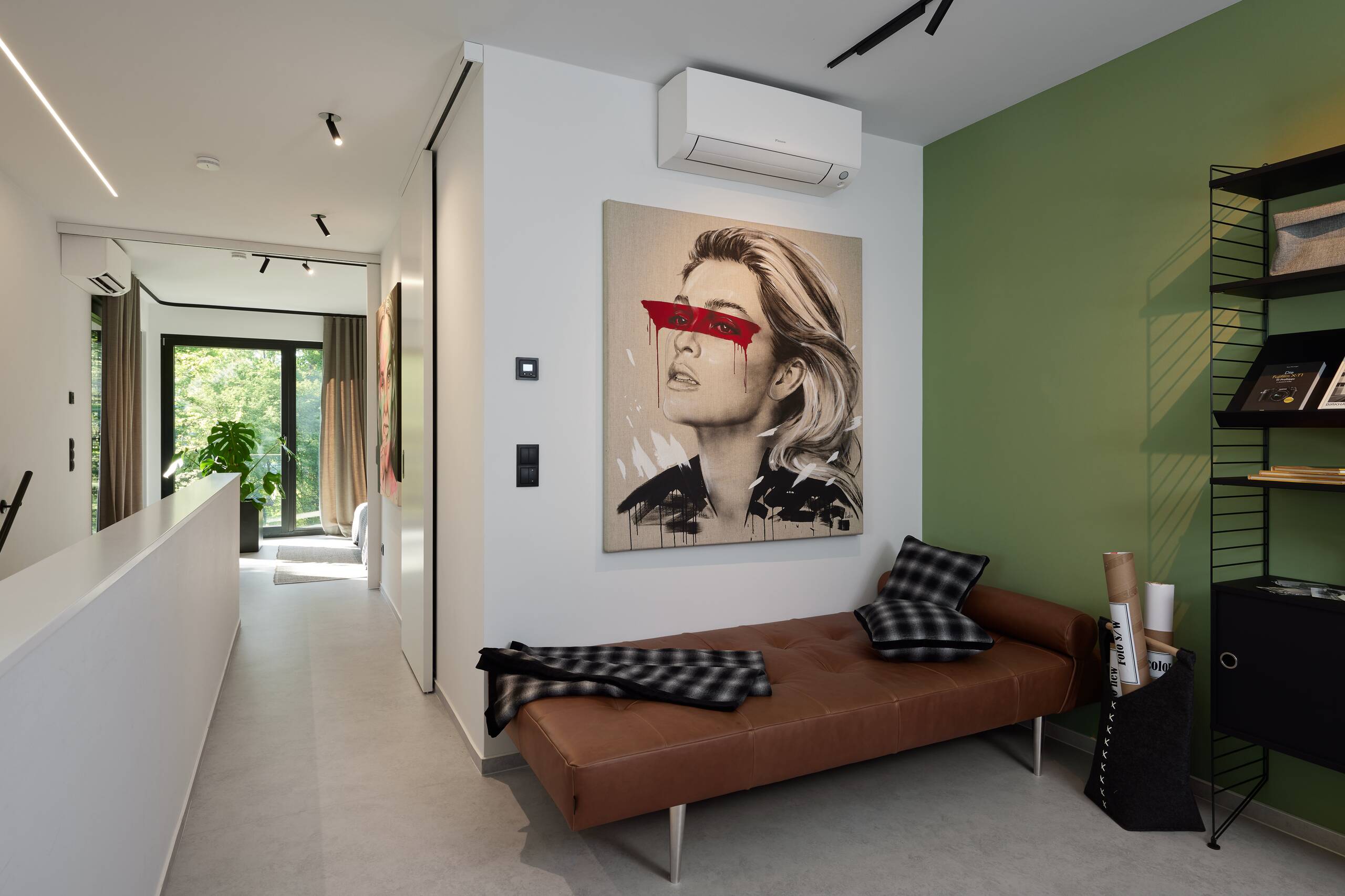 Ce projet de la série OPTION présente une variante à deux étages avec un module d’extension pratique qui peut être placé à côté du coin repas ou, en option, à côté de la cuisine. Comme toutes les maisons de cette série, elle séduit par ses lignes claires et son architecture minimaliste qui se concentre sur l’essentiel. La façade en bois noble dégage une impression de calme et de chaleur, tandis que les fenêtres généreuses créent des espaces baignés de lumière. Parfaite pour les célibataires ou les couples, la maison à deux étages avec module d’extension offre un concept d’espace bien pensé avec une chambre à coucher spacieuse et un bureau à domicile séparé. Le plan d’ensemble fonctionnel et le design clair créent une atmosphère harmonieuse - sans poids superflu, mais en mettant l’accent sur le confort et l’élégance moderne.