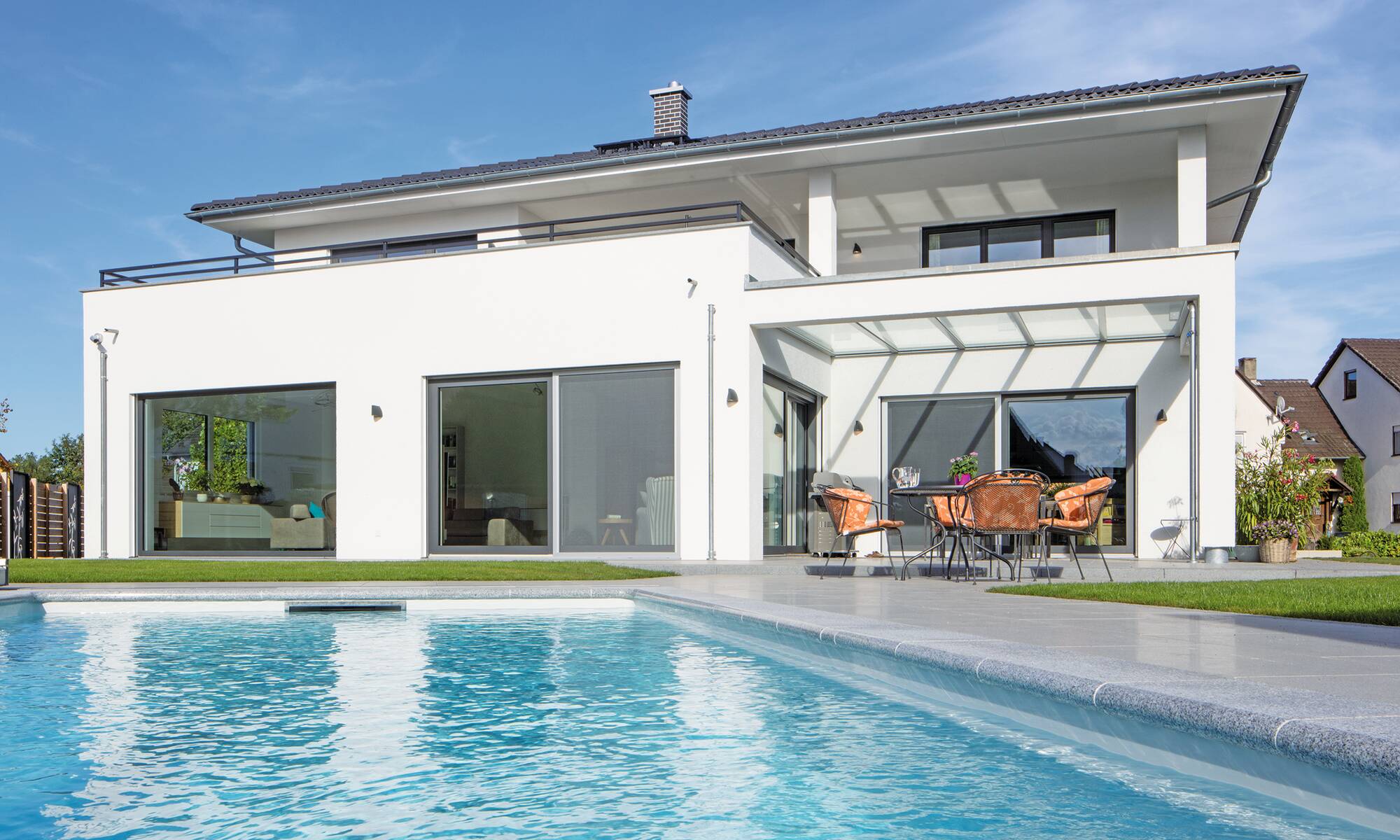 Cette maison de rêve avec piscine et sauna a vraiment tout pour plaire. La villa moderne avec terrasse couverte a été conçue par un architecte pour une famille de six personnes. Grâce aux grandes baies vitrées, l'intérieur est inondé de lumière. La cuisine ouverte s'intègre harmonieusement dans l’espace salon-salle à manger. Les portes vitrées se font discrètes au profit de la transparence et de l’espace. Un escalier moderne en bois noir et blanc, véritable point de mire, relie les trois niveaux. Un nouvel univers se dévoile à chaque étage. Alors qu’au rez-de-chaussée l’espace salon-salle à manger côtoie la suite parentale avec dressing, les étages du haut regroupent les quatre chambres des enfants. Une villa offrant au total plus de 300 m² de surface habitable, avec en prime une grande terrasse sur le toit, où la famille peut admirer les couchers de soleil.